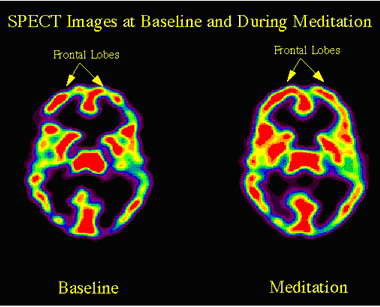 انه اثناء الاستغراق في الصلاة و التأمل فإن تدفق الدم في المخ زاد في منطقة الفص